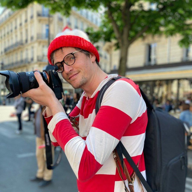 Depuis six ans qu’il bat les pavés, Arnaud César Vilette n’est plus un photographe anonyme. Une notoriété (48 600 abonnés sur TikTok, 5 800 sur Instagram) qu’il doit, outre un sourire qui le quitte rarement et un grand rire sonore, essentiellement à son costume de Charlie. “On me reconnaît, les gens me demandent des selfies, depuis les fenêtres on s’amuse à me chercher dans la foule !” L’idée lui est venue avant d’être photographe. “J’étais à un festival de musique, avec le bonnet rayé, tricoté par ma mère. Un gars sans-doute un peu bourré est venu me voir en disant qu’il avait retrouvé Charlie, je me suis rendu compte que ça me permettait de nouer facilement contact.”
